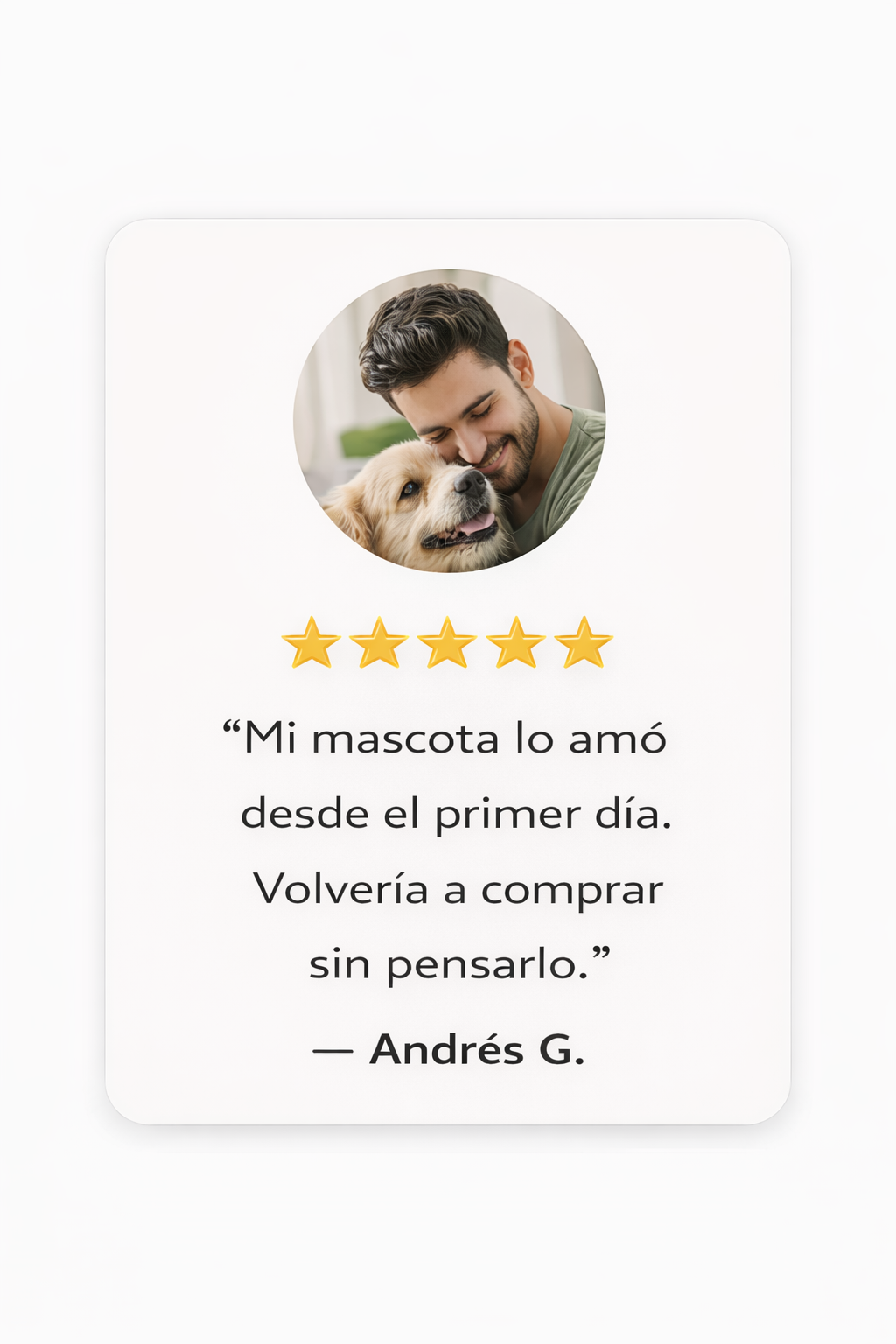 “Muy buen producto, se nota la calidad desde el primer momento y cumple con lo que promete. Llegó bien empacado y mi mascota lo aceptó sin problema. Quedé muy satisfecho con la compra.”